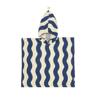 Portofino Kids Beach Poncho Blue Waves Waffle