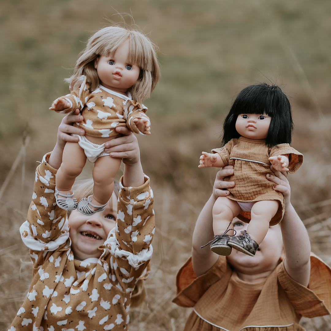 Minikane is a French brand founded by Karin Maillard-Aigouy, whose journey began with a heartfelt mission to bring joy and meaning to children’s play. Known for its sustainable dolls and fashion-forward doll clothing, Minikane blends Parisian craftsmanship with eco-conscious practices.