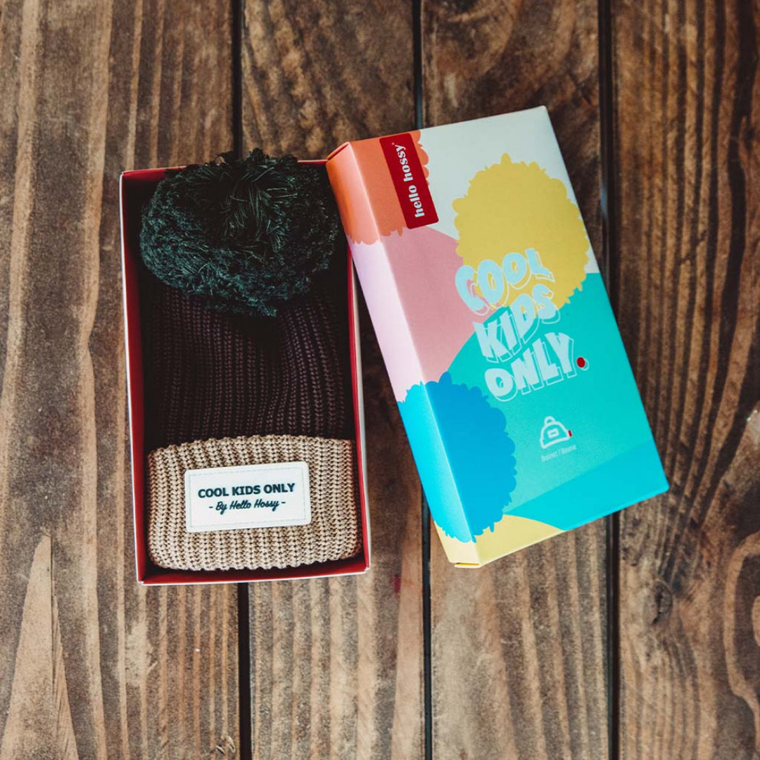 The Hello Hossy Kids Colour Block Pistachio Beanie blends style, warmth, and comfort in a unique brown and green colourway. Fleece-lined and made from organic cotton, it provides a snug yet breathable fit, ideal for outdoor adventures, winter walks, and school runs.