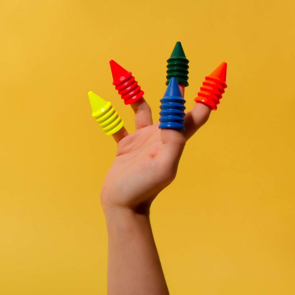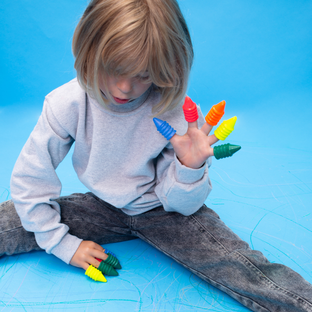 Encourage your child's creativity and fine motor skills with the wax finger crayons by OMY.