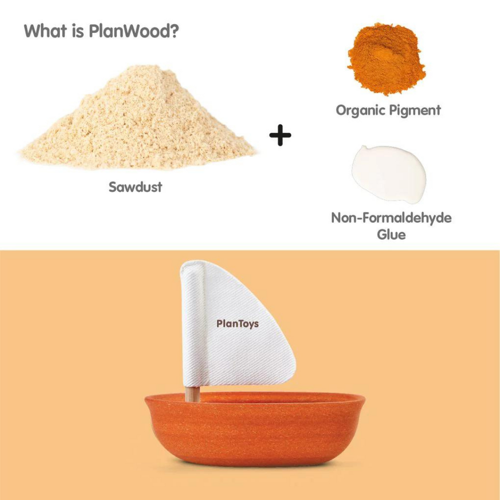 Made out of PlanWood which a PlanToys material made from surplus sawdust.